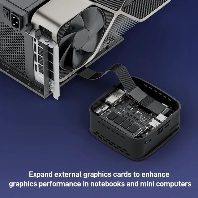 2 to PCIe Cable: Ultra-thin & flexible design ( 0.8 mm thickness) with premium aesthetics, eliminating port damage risks from rigid traditional cables. Flat cable architecture with full-coverage shielding and advanced EMI materials to minimize interference and performance degradation. The cable is highly flexible and can be bent freely without affecting functionality, but avoid pulling or tugging it excessively. ^^