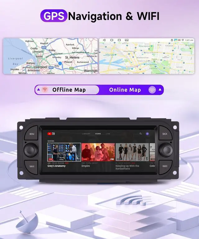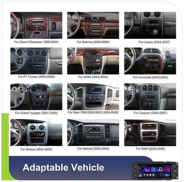 Android Car Stereo: for Jeep Grand Cherokee 1999-2004, Liberty 2002-2007, Wrangler 2003-2006; For Chrysler 300M 2002-2004, Chrysler PT Cruiser 2003-2005, Sebring Sedan 2002-2006, Chrysler Coincide 2002-2004, Chrysler Town&Country 2004-2007, Chrysler Grand Voyager 2001-2003; For Dodge RAM 2002-2006, Dodge 1500/2500/3500 Pickup 2004-2005 ^^ Wireless Carplay & Android Auto &