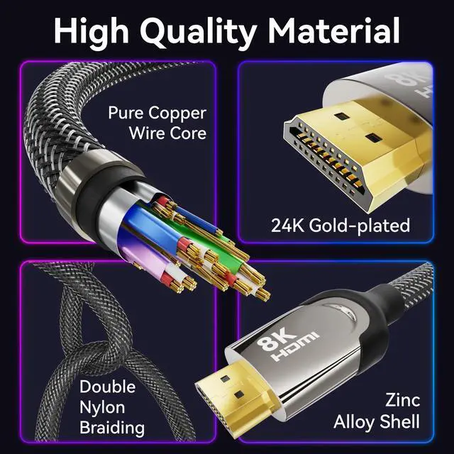 Experience: 48Gbps bandwidth unleashes unparalleled 8K UHD transmission, 4x 4K resolution for stunning visuals. Bright colors, deep contrast, & backward compatible ^^ Max