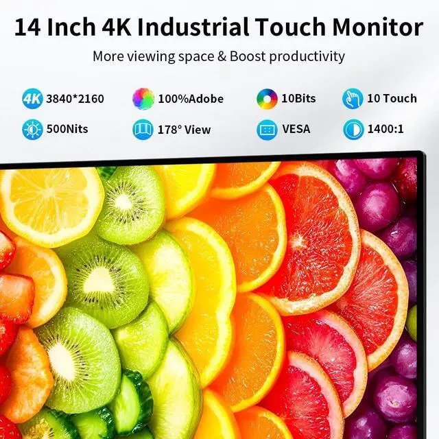 • 14.0 inch 4k,3840*2160,500 Nits 95% P3 10 Point Capacitive Touch Screen,HDMI/USB C/Mini Dp Interface,Integrated Speakers,VESA ,Commercial Screen
