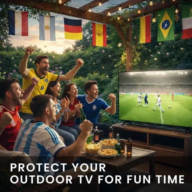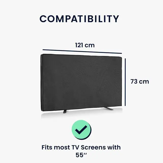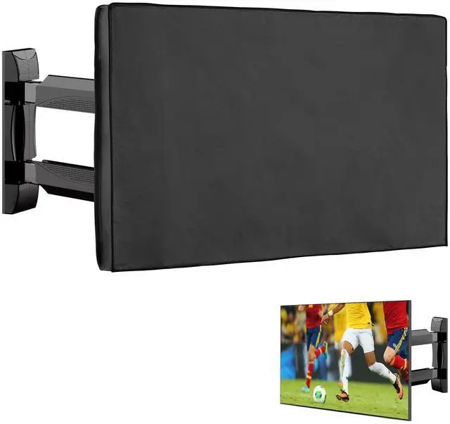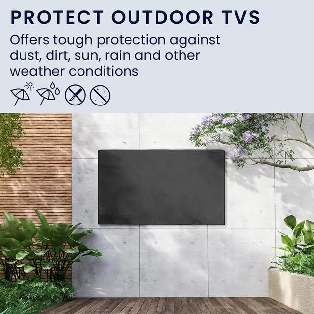 PERFECT FIT: The moisture- and scratch-resistant screen cover is compatible with most wall mounted TVs. The velcro closure gives you the peace of mind of a secure waterproof TV cover for outside Product Information 1x Outdoor Waterproof Weatherproof TV Cover NOTE: Our TV protector for outside doesn't cover the underside of the television or guard against extreme hot and cold temperatures, hail or heavy impact. In these cases it's best to bring the TV inside
