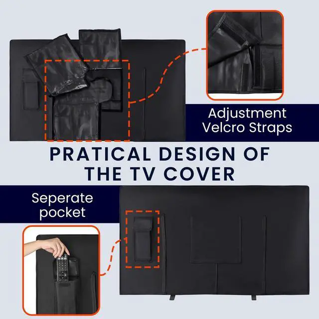 fabric STORAGE POUCH: Our tv covers for outdoors have a convenient pocket on the back where you can store your TV remote control. Keep your television remote safe in this waterproof velcro pouch when not in use
