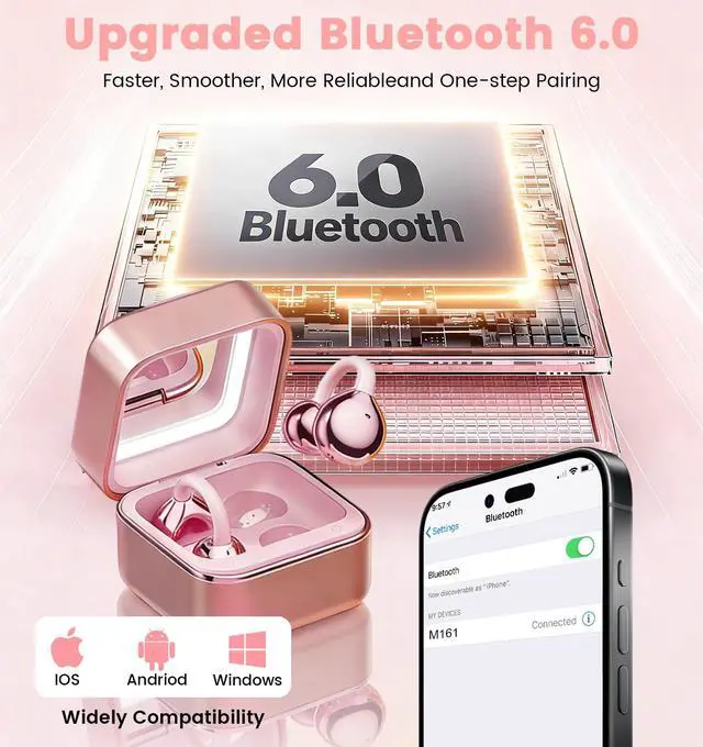 Bluetooth 6.0: Dive into stunning 3D sound with our exclusive ACSAVITY high-energy driver + 11mm Dynamic Driver, Jacuate wireless clip on earbuds paired with Panoramic Intelligent Algorithm. Bass gets a 58% boost and overall sound doubles in claritydelivering crisp, punchy, and truly immersive audio. Our wireless Bluetooth earbuds with the latest Bluetooth 6.0 chip ensure lightning-fast, ultra-stable, zero-latency streaming for seamless listening. ^^ Great Sound, Open-Ear