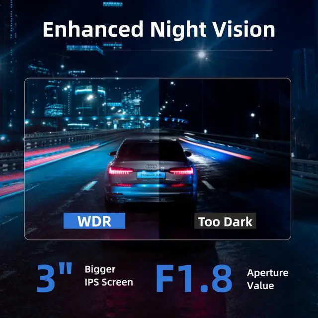 [Ture 4K/2160P Recording] - Capture your ride in stunning 4K resolution with a 140 wide angle lens for the front dash cam. The dash cam features HDR technology and enhanced super night vision, ensuring visibility even in low-light conditions. Enjoy reliable recordings both day and night. ^^ [Built-in GPS and WiFi] - enhance your driving experience. Both Android and iOS users can connect to Wi-Fi by downloading the Miofive app. Once connected, you can quickly access and view your recorded videos on your mobile phone. This makes it easy to share your driving experiences in real time with friends, family, or insurance companies.