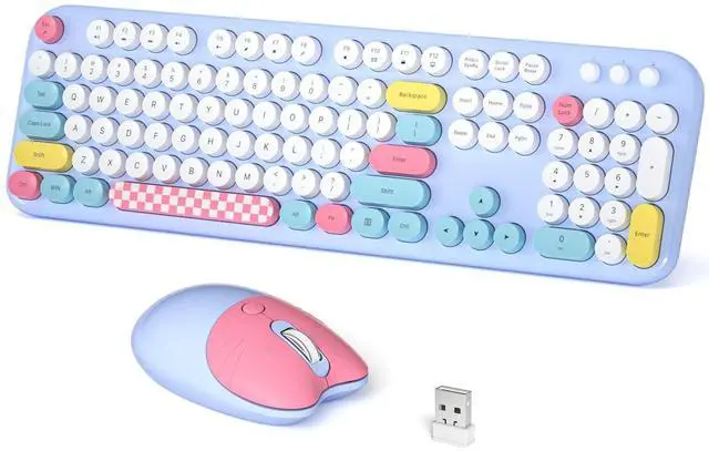 ^^ Auto Sleep Mode: Our cute colorful keyboard and mouse wireless combos both require only 1 AA battery. Wireless keyboard and mouse automatically enter sleep mode after 5 minutes of inactivity, efficiently saving battery life and reducing the need for frequent replacements.
