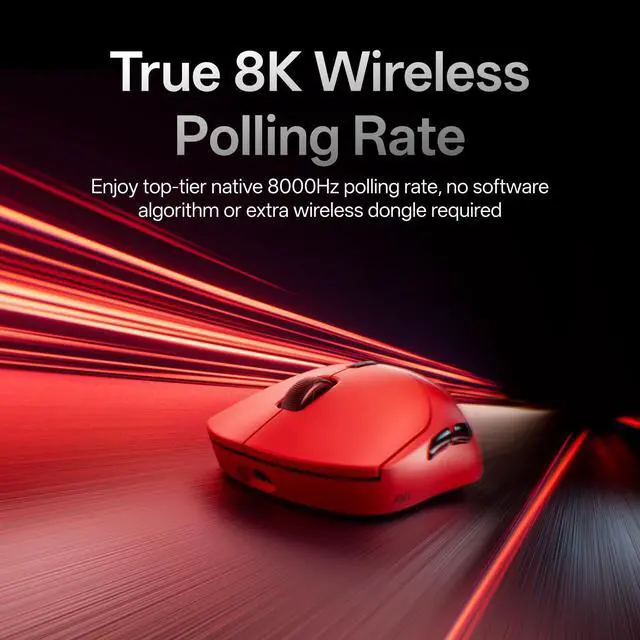 53g Ultra LightweightFeaturing optimized hand grip and more easy-to-access side buttons, the VT2 MAX has significantly improved the comfort and accuracy of use, while reducing the weight by 10% - taking your gaming performance to next-level with less strain on your hand and wrist. ^^ Up to 750 Hours Battery LifeUpgraded with Nordic nRF54L15 MCU that integrates an ultra-low-power wireless technology, VT2 MAX manages to make wireless gaming mouse no longer dependent on frequent charging - with an unbeatable 750 hours battery life at 1000Hz. ^^ True 8K Wireless Polling RateEnjoy top-tier native 8000Hz wireless - no longer relying on software algorithm or extra wireless dongle, VT2 MAX provides a solid 8k wireless performance even in noisy tournament environments.