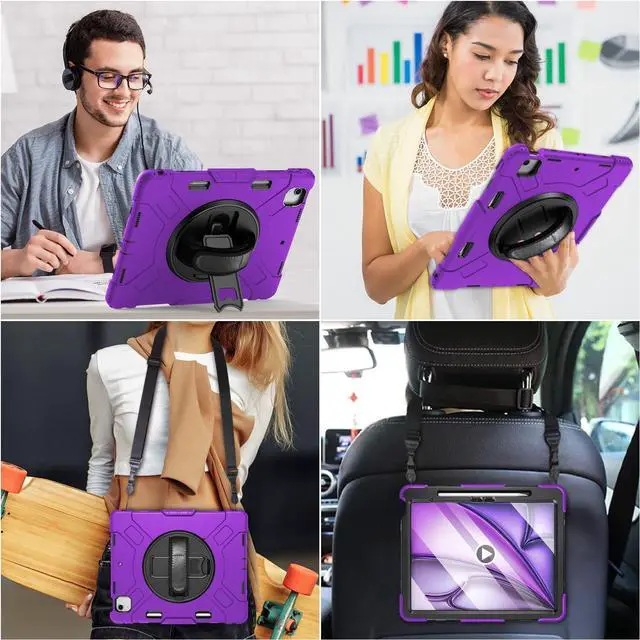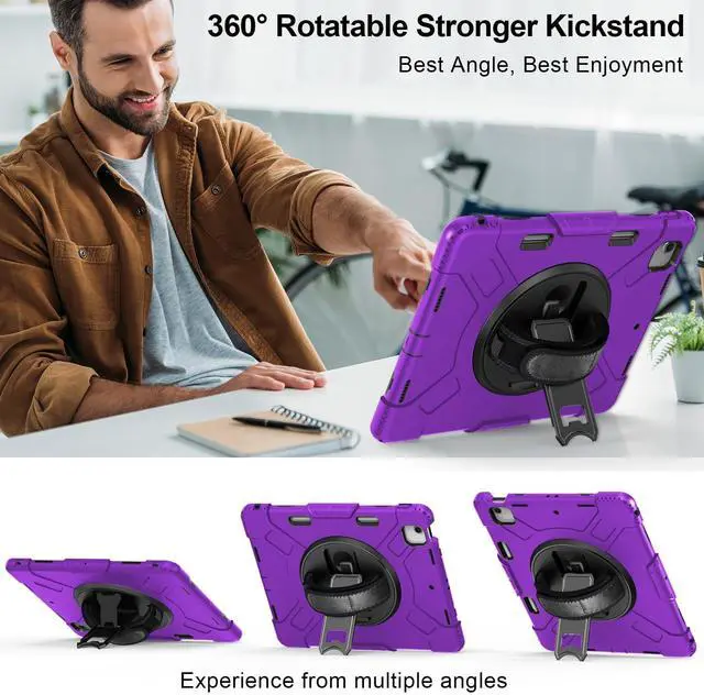 ROTATING/MULTI-ANGLE STAND: Case for iPad air 13 inch built-in 360-degree swivel foldable sturdy kickstand. It can support multi-angle (Vertical, Horizontal). Ideal for watching videos, conferences, typing and drawing, let your hands-free. This sturdy kickstand can be folded when you don't need it ^^ ADJUSTABLE HAND STRAP +