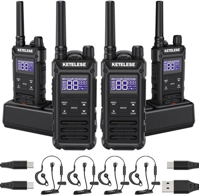 What's more, a corn can remove the battery cover and replace a new battery ^^ Easy for BeginnersPalm size; Light weight; Push to talk (PTT); One key group talk, 10 call tones; Keypad lock; LCD screen with backlight, Belt clip with lanyard hoop; Convenient Type-C charging ^^ Lifetime After-sales ServiceKETELESE provides over 5 years warranty to walkie talkies and lifetime after-sales service, contact us for any queries/problems before/after sales, we will refund or send replacement at first time