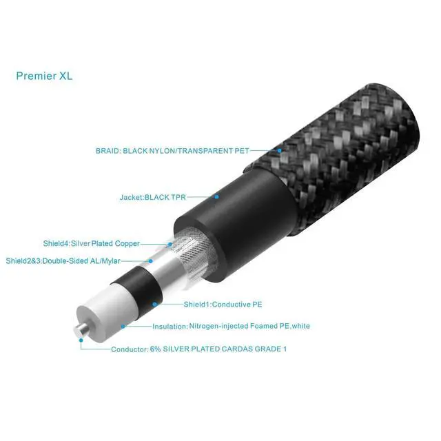 Pangea Audio's Premier XL coaxial digital cable takes a no-compromise approach to digital audio, featuring precision-wound 18-gauge conductors using a Cardas Grade One Copper signal conductor with a 6% silver coating. It also boasts multi-layered nitrogen-injected polyethylene foamed insulation, premium Prime 750 RCA connectors, and a tough woven nylon braided jacket. The Prime 750 RCA features a special ultra-low mass design that takes best advantage of the fine properties of exotic metals, while avoiding technical issues caused by using higher mass metal contacts such as eddy currents. Prime 750 has an ultra-low-mass, hollow, direct-gold plated Tellurium Copper center pin and ultra-low-mass direct-gold plated beryllium copper spring-type ground contacts.