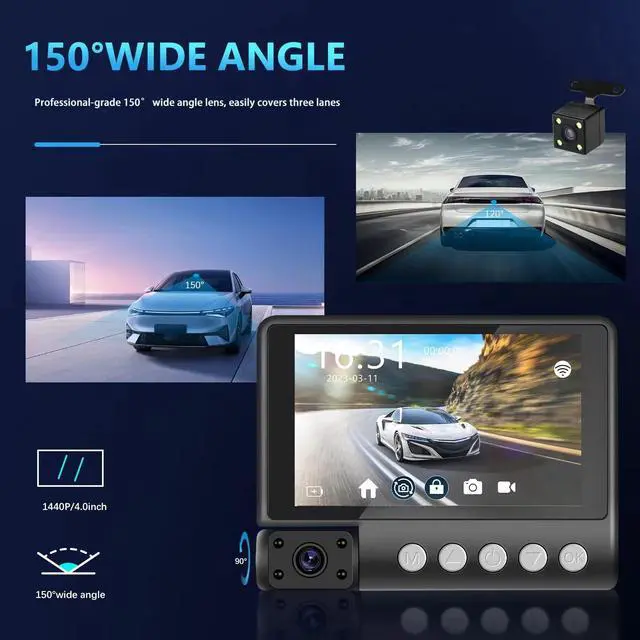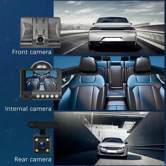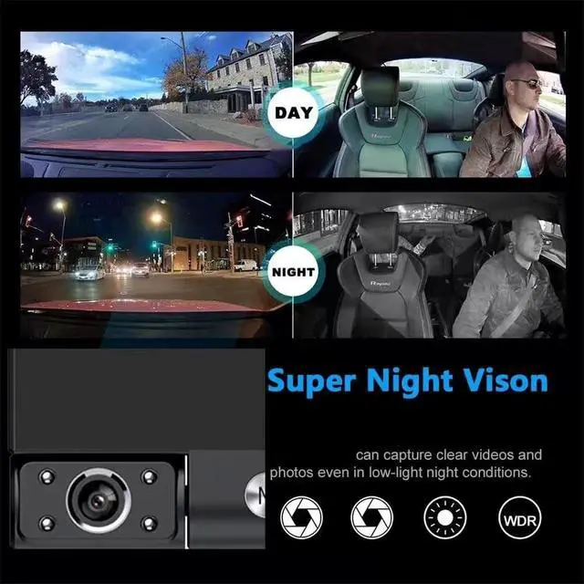 Car Front and rear inside: 1080P+1080P+1080P. D89 dashcam captures incredibly clear and detailed footage of your travels day and night. ^^ 4'' Touch Screen You could easily access all features and settings of the dashboard camera on user-friendly touch screen. ^^ Built-in WIFI GPS Function The recorded video can be seen on the smartphone app, you can easily downlow the vedio and share it with your friends! GPS Player could view the speed route latitude and longitude of the recorded video. It can provides evidence during emergencies. Car camera could completely record the driving route data. ^^ 24H Parking Monitor 1. with buck line hardwire kit, dash cam could record continuously for 24 hoursG-sensor could detect collision and lock the emergency video. ^^ WDR & IR Night VisionLasnyfei dash cam with F 2.0 aperture and WDR prevent overexposure caused by headlights, and to record license plates. It detects sudden changes in brightness, and automatically adjusts brightness for clear recording.