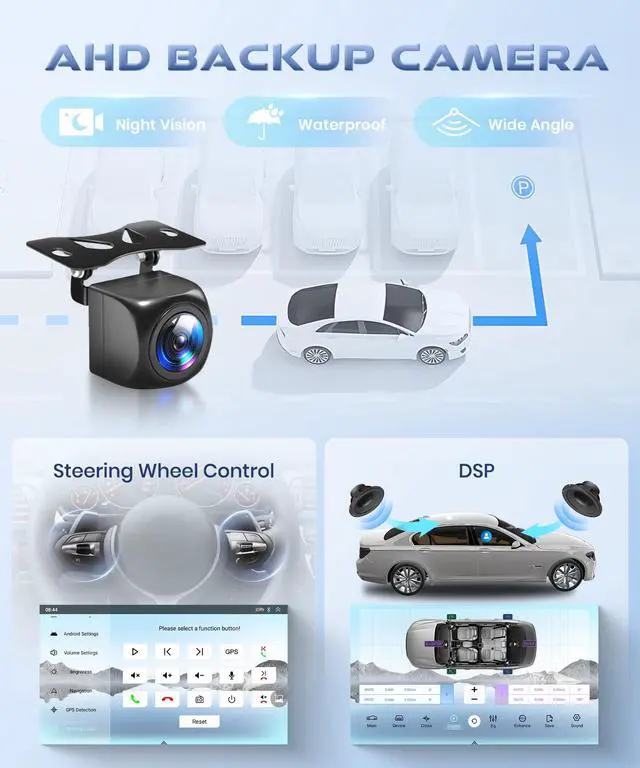 GPS & WiFi: For 2002 Civic carplay radio supports online maps. The online map is also supported. After connecting to WiFi, you can use GPS Navigation anywhere. This for Ford Focus car radio allows you to install or delete Android apps from the Application Store, just like a smartphone. ^^ Bluetooth & FM Radio & EQ: For 2003 Civic stereo with Bluetooth supports phonebook synchronization, hands-free calls, and mobile music streaming. FM radio, can transmit the radio to the car stereo via FM to enjoy the original car stereo. You can also listen to real-time traffic, news broadcasts, weather forecasts, etc. The EQ sound effect function allows you to adjust the equalizer settings of the audio output for better sound quality. ^^ Rear view camera &