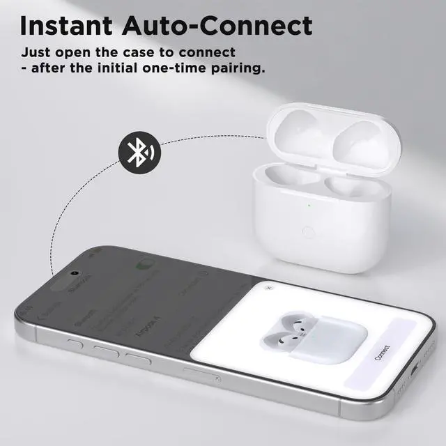 ^^ Instant Bluetooth Pairing: To pair this AirPods 4 replacement case, lightly tap twice on the sensor area below the indicator light the light will flash white to signal pairing mode. Once set up, it automatically reconnects to your iPhone, Apple Watch, iPad, and Mac the moment you open the lid, with no manual pairing needed. For the best first-time setup experience, we recommend charging both the case and earbuds together for about 10 minutes beforehand to ensure ample power.