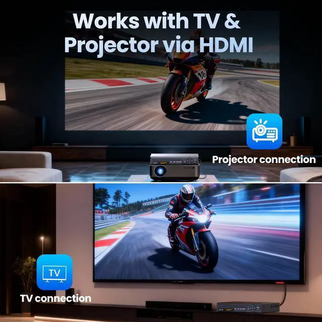 ^^ Dual Output: HDMI + AV / RCAComes with both HDMI cable and AV (RCA) cable compatible with modern smart TVs and older legacy TVs alike. ^^ Compact, Durable & Easy to UseUltra-slim metal shell with full-function remote and on-screen menu; ideal for home, travel, dorm rooms or RV setups.