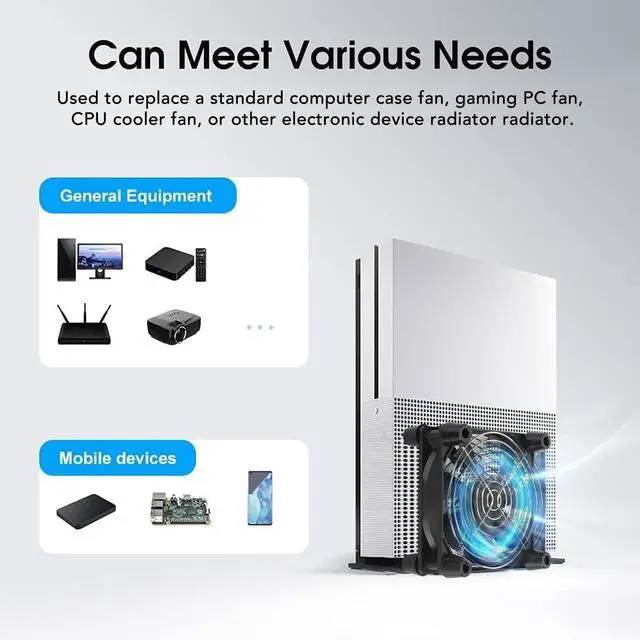 ^^ APPLICABILITY: Designed to meet the cooling and ventilation needs of a wide range of devices including computers, game consoles, home appliances, entertainment equipment, solar equipment and more. This flexibility allows you to adjust the fan operation to the level that best suits your environment, whether you need powerful cooling or a quiet working environment.