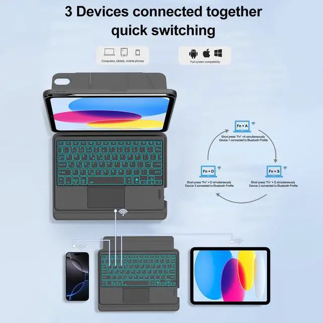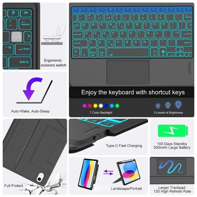 Compatibility:This keyboard case compatible with iPad A16 11th Generation 11-inch 2025(Model: A3354, A3355, A3356), compatible with iPad 10th Generation 10.9 inch 2022(Model: A2696, A2757, A2777, A3162). Not compatible with any other models. Please check the model number starting with "A" on the back of your tablet before purchasing