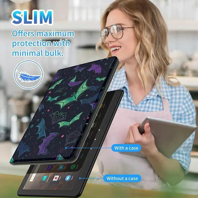 Specifically designed for All-New Kindle Fire HD 10 & 10 Plus Tablet (13th/11th Gen, 2023/2021 Release) 10.1 inch. Comes with a matching Screen cleaning pad. ^^ Slim & Lightweight - Slim and light weight hard back design with built-in stand adds minimal volume while protecting your precious fire HD10 2023 tablet. ^^ Full Protective HD 10 2023 Case - Premium PU leather exterior and soft non-scratch interior features slim, soft and durable, providing your tablet the best protection from knocks, dust, damage and scratches. Easy access to all features and controls.