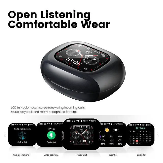Easy to set up and use: The Fidiso charging case features a large touchscreen, you can easily manage music, make calls, check information, DIY wallpapers or even check the weather, calendar, battery status, set the time and find your earbuds, all without lifting a finger. Enjoy the freedom during workouts, work, or travel. providing more convenience for your daily life. Additionally, when brightness is maxed out, the earbuds case can function as a flashlight. ^^ Great