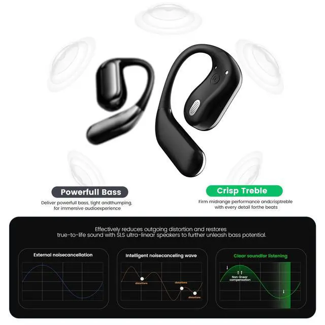 Safety Open Ear Design: Unlike typical in-ear headphones, Fidiso strikes the perfect balance between comfort and sound quality, designed for extended wear without discomfort. these over-the-ear wireless bluetooth headphones bend freely without deforming and fit snugly into a variety of ear contours.