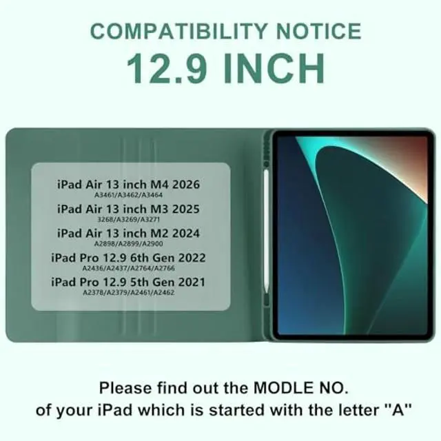 Multiple Viewing Angles: For iPad Pro 12.9 Keyboard Case made with a premium synthetic leather exterior, a secure magnetic closure & a durable interior plastic case that firmly holds pro 12.9. The Keyboard Case 12.9 inch can adjust to any angle you like, easily adjust to the most comfortable angle for you, providing you with amazing versatility. Perfect for working, writing or watching videos at office, school and home ^^ Built-in Pen Holder & Perfect Cutout: This for iPad Pro 12.9 Case Keyboard built-in Apple Pencil holder, cap and adapter slot to store your Apple Pencil, easily carry stylus and get it whenever you need it. Precise cutouts allow full access to all ports, speakers, microphone and camera. And ipad air 13 inch case keyboard fully charge in 2-4 hours, work for more than 80 hours, and stand by for 120 days ^^ 360