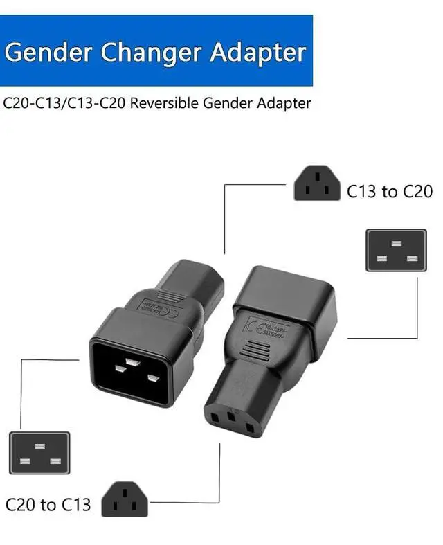 C20 to C13 Power Adapter (10A-16A/250V) - A heavy-duty adapter providing secure connections for servers, UPS systems, and industrial equipment. Safely handles 10A-16A current and 250V voltage with overload protection. Features universal compatibility for data centers, labs, and IT hardware. Compact plug-and-play design with durable construction ensures reliable performance for critical power applications. with most computer hardware ^^ Extend connections to servers, desktop computers, monitors, printers, and more ^^ Replacement power extension cable/cord.