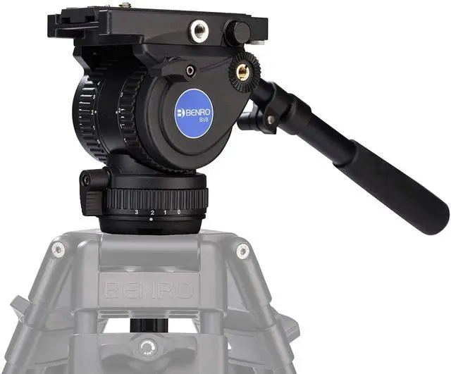 The Benro BV8H 75mm video head supports up to 17.6 lb. making it a perfect match for studio applications and larger video cameras. All of the main controls, other than counterbalance, are located on the left side of the head making it easy to make adjustments with a single hand while operating the camera. The 5 step counterbalance (steps 0-4) allows you to dial in the correct amount of counterbalance for your set-up. The 4 step pan & tilt movements make sure your movements are smooth and steady. One 3/8"-16 accessory mount come in handy when needing to add a simple audio recorder or monitor.