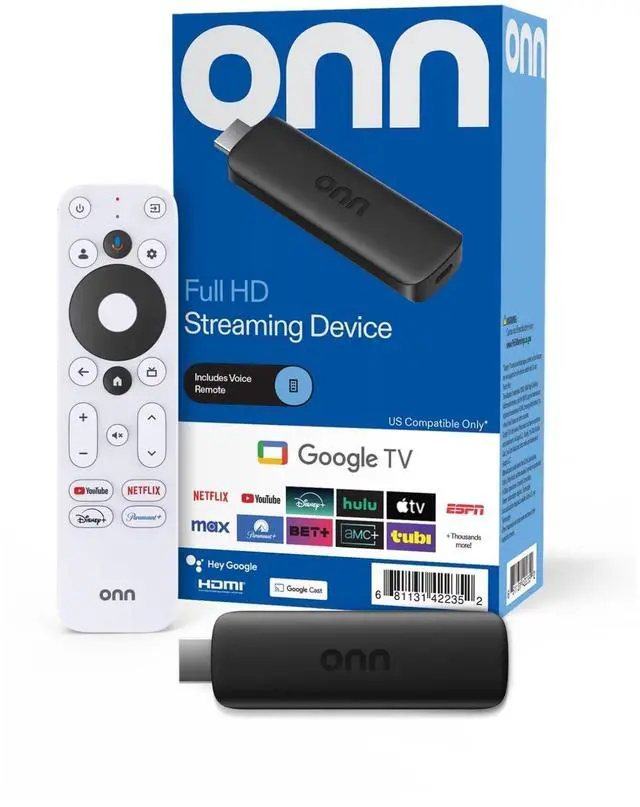 The easy way to start streaming with the affordable HD streaming with the onn ^^ Google TV Full HD Streaming device ^^ Easy plug and play design stays hidden behind your TVand brings a variety of your favorite entertainment to life ^^ Effortlessly browse and discover content with Google TVbringing your streaming services together in one seamless and easy-to-navigate experience ^^ Access a universe of more than 700, 000 movies and shows and 10, 000+ appsincluding NetflixYouTubeDisney+and 800+ free live TV channels