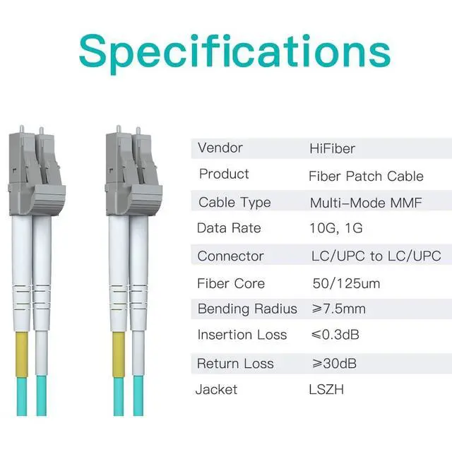 OM3 Multimode Fiber: 1 meter/ 3.3 ft OM3 LC to LC Multimode Duplex Fiber Optic Cable, MMF, UPC Polish, 50/125um; It is designed for 1G/10G/40G/100G MMF connection, and is ideal for 1000Base-SX, 10Gbase-SR, 10Gbase-LRM transceivers etc. 10 Pack ^^