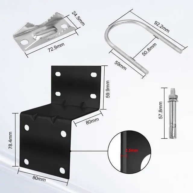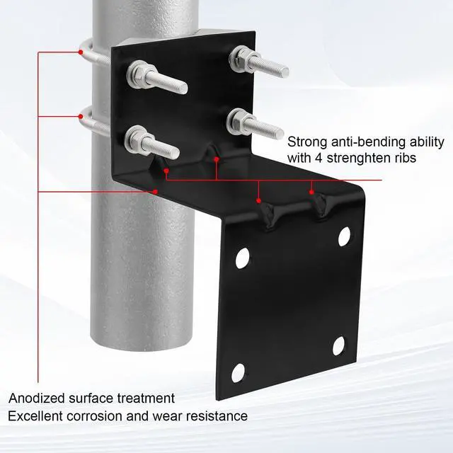 Heavy Duty -- The antenna pole mount is made of 2.5 mm thick high quality galvanized zinc-plated iron with anti-rust coating finish, it can withstand harsh weather conditions, ensuring long-lasting performance. ^^ Strong Clamping Force -- The V-jaw brackets keep assembly nice and secure even in inclement weather. It can provide a stronger grip on the poles, ensuring they don't slip down in the wind. ^^ The whole set of accessories can be used for holding poles with diameters ranging from 1.1 to 1.97 in (30-50mm) ^^ Easy to install -- The antenna mast bracket comes with all necessary hardware and accessories, making installation quick and easy.