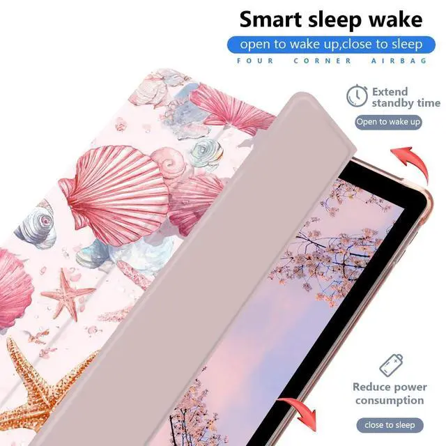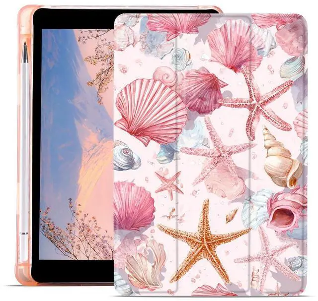 This kawaii coastal case with pencil holder designed for iPad A16 11th Generation, 11 inch, iPad 10th Generation/2022, 10.9 Inch.