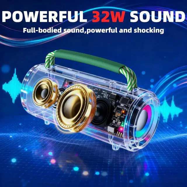 32W HD Stereo & Powerful Bass ZSYQVGS Wireless Bluetooth Speaker equips with a 32W (2 x 16W) of stereo audio drivers speaker and an advanced amplifier, delivering studio-grade sound with crystal-clear vocals and powerful basswhether at home, outdoors, or hosting parties. You can purchase two compatible speakers and enable stereo pairing mode to deliver enhanced immersion and surround sound experience unmatched audio performance! ^^ Bluetooth 5.3 Stable TransmissionEquipped with the latest Bluetooth 5.3 chip, it enables ultra-fast pairing, uninterrupted transmission up to 100 feet, enhanced interference resistance, delay-free calls, perfect audio-video synchronization for streaming, and eliminates stuttering or disconnection issues.