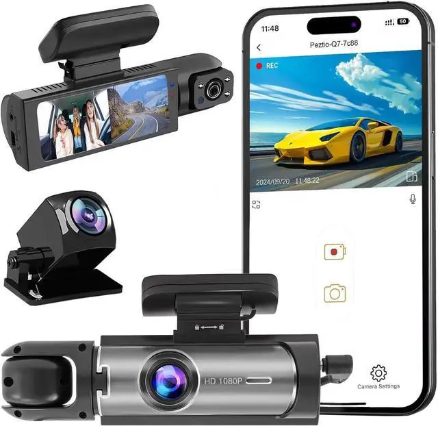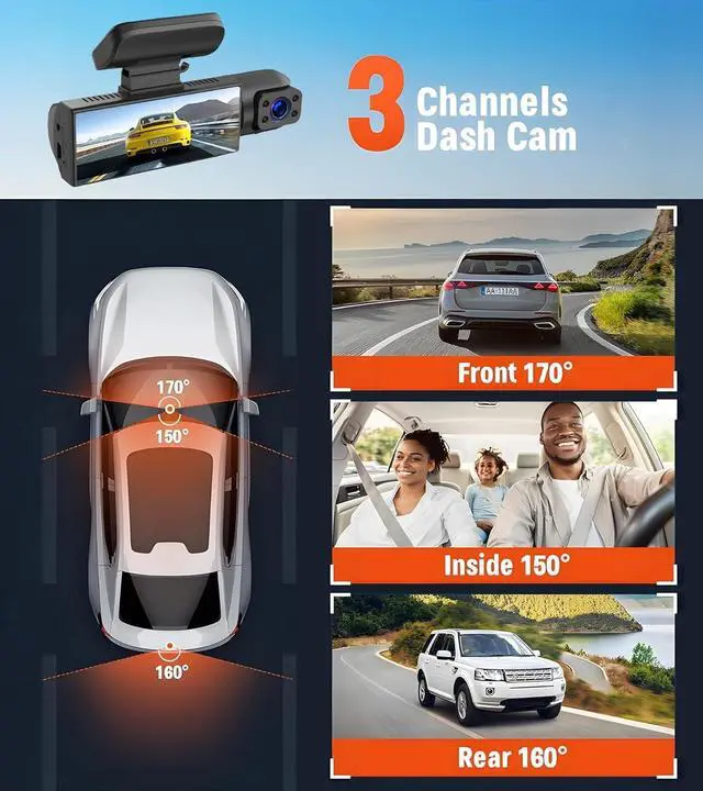 Dash Cam Front and Rear InsideHannahcos Car dash cam offers 1080P in-car recorder built-in 3 channel system that provides 160 front camera and 150 inside camera and 160 rear camera.The dash camera features a large 3.16-inch IPS screen that captures every detail of the road ahead and the interior of the vehicle simultaneously on both screens