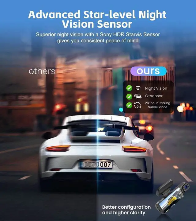 Super Infrared Night Vision & IR Cabin Light2025 New 1080P Dashcam for cars,the dash cam front and rear features infrared night vision for optimal performance in low-light condit