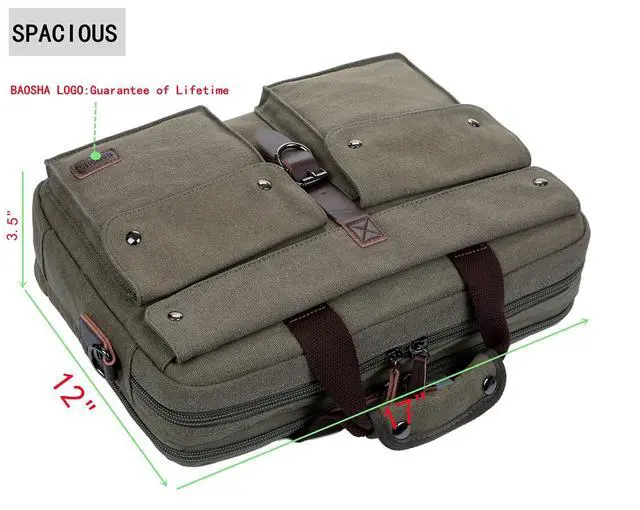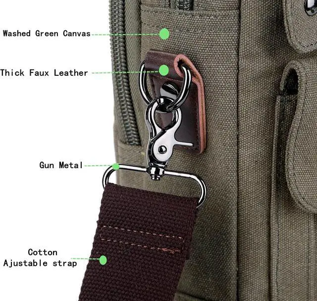^^ Material: Comfortable/Durable/Soft Washed Canvas ^^ Detachable, adjustable shoulder strap with length 50 inches for cross body or shoulder carries / Handle on the top for picking up ^^ Perfect for office, Business traveling, Carry on and casual life ^^