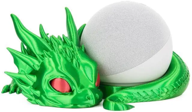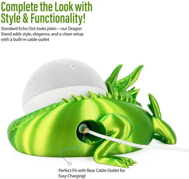 Introducing the Costume Wizard Dragon Stand, a meticulously crafted 3D printed dragon designed to elegantly hold your Echo Dot 4th/5th Gen smart speaker. Made in the USA, our dragon stands are not just about aesthetics; they support American workers by utilizing high-quality materials and expert craftsmanship. Whether you are a dragon enthusiast or looking to add a touch of mythical charm to your home or office, this desktop speaker stand is the perfect choice. Our dragon stand transforms your echo devices into a centerpiece, adding an enchanting element to your decor.