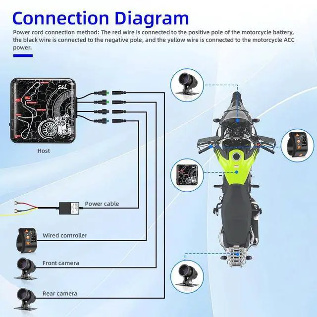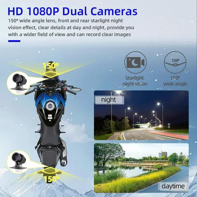 Dual HD 1080P RecordingVSYSTO Motorcycle Camera features HD front and rear cameras with SNV technology coupled with 150 + 150 wide viewing angle effectively reduce blind spots. The starlight night vision function allows the camera to capture clear images even in low light conditions, improving nighttime driving safety. ^^ HD OLED Wired ControllerVSYSTO motorcycle recorder with small HD LED Screen wire Controllermulti-function buttons let you Quick operation without stopping the vehicle, always displaying tire pressure and temperature, press the button of the wiredcontroller to enter emergency recording mode and assisted driving modeGuaranteeing your safe travels ^^ Wifi and TPMS Supports WiFi connection for use with APP provided by VSYSTO, this motorbike camera can loop video recording, record every key moment.