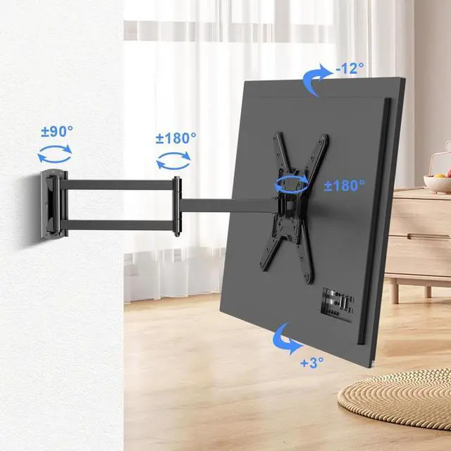 This long extension TV wall bracket extends 30" from the wall, allowing you to adjust the viewing position according to your preference. Moreover, it can retract back to just 3" from the wall, saving space and giving your room a clean look. The long extension feature makes it ideal for corner placement, giving you the freedom to watch TV anywhere you want. ^^ Optimal Viewing Angle- This TV wall bracket offers an optimal viewing experience by providing adjustable viewing angles. You can adjust the tilt of the TV up to +3 and down to -12, reducing the discomfort caused by TV glare.