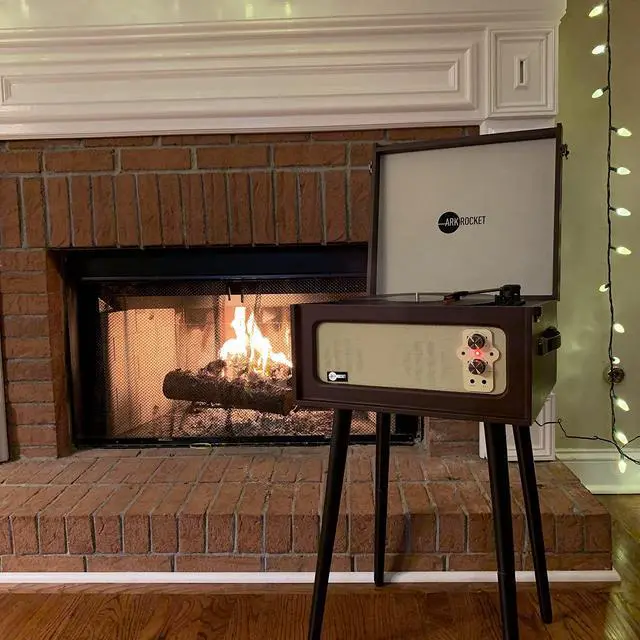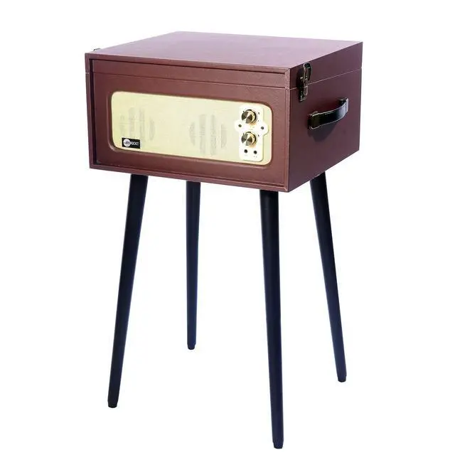 Built-in Bluetooth receiver lets you stream your music wirelessly to the ARKROCKET dynamic full-range speakers. ^^ Vintage-inspired, belt-driven 3-speed turntable; plays 33 1/3, 45, and 78 RPM records ^^ Easily plug the Voyager turntable into your existing stereo system with the RCA outputs ^^ Adjustable pitch control; Auxiliary in; headphone jack for private listening ^^ Removable Legs.
