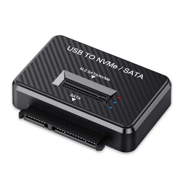 Note: NVMe and SATA SSD are not included. ^^ 3) Attached Type-C & Type-A Cable, Type-C Cable Both side can be inserted; M. 2 NVME recommends USB-C Gen 2 10Gbps or USB4/TB3/TB4 for extreme speed performance. Backward compatible with USB 3.1 Gen1 and USB 3.0 up to 5Gbps. ^^ 4) Aluminum Alloy Shell, Adopts aluminum alloy shell, slim design, durable and excellent heat dissipation, be portable and easy to carry. ^^ 5) This device can only work with one drive at a time, If both M. 2 and SATA interfaces are plugged into the disk drive at same time, Only SATA interface driver can be worked. (All the disk don't support hot plugging, Please don't chagne the SSD when connecting on computer. )