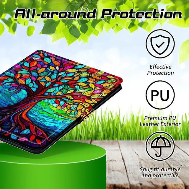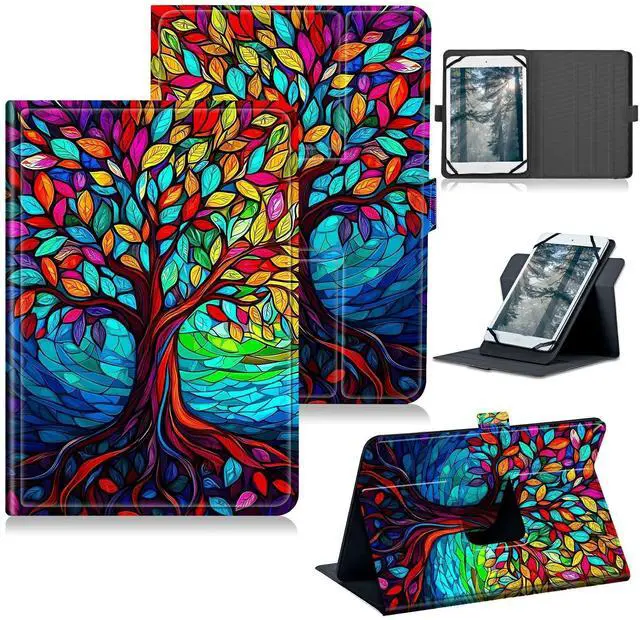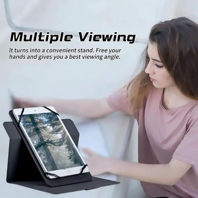 [Universal Compatibility] Designed to fit for 9 inch to 10.5 inch for Competible with T-Mobile Revvl Tab 2 10.1" (Model: 9185W, 2025 Release), Revvl Tab 5G 10.36" 2023 Release, like fire HD 10 /Tab M10 10.1 /Tab 4 10.1 / Tab S5e 10.5 2019 SM-T720/T725 / Tab E 9.6 inch/ Tab A 9.7 / Tab A 10.1 Inch Tablet/ Tab S4 10.5" /Android Windows 10"/Dragon Touch X10 Kids Tablet 10.1" /iPad 9.7 inch 2017/2018/ 10.1 inch 10.2" Kindle Scribe 2022 -1st Gen, offering a perfect fit for a wide range of devices. ^^ [360 Degree Rotating Stand] Adjustable fixing silicon band smart cover allows for multiple viewing angles, ensuring comfortable and convenient usage. the inner lining size of a universal tablet is 7.6 "x 5.2" (192mmx132mm). Please note that the size should be smaller than this size when placing an order in order to fit the tablet correctly. ^^ [Magnetic Closure & Full Protection] Powerful magnets keep the front cover sealed, safeguarding your tablet from scratches and damage. ^^ [High-Quality PU Leather] Durable and stylish, with no back camera opening for added protection.