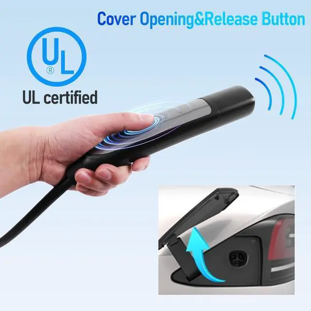 Safety Certification: Our Tesla charging cable is constructed with high-strength PC material and a ultra-sturdy outer shell for exceptional durability. UL 2251 and UL 2263 certified ensuring quality and safety standards that meet rigorous requirements. The charging head features high-quality materials with specialized gluing process, making it heat-resistant, flame-retardant, and waterproof - essential for any reliable Tesla mobile connector. ^^