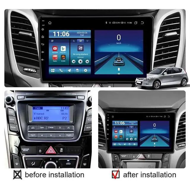 FitmentOur car radio stereo is specifically designed for Hyundai i30 (GD) 2012 2013 2014 2015 2016 2017 with 9 inch touch screen radio, ensuring a fit and seamless integration with your vehicle ^^ Wireless for Carplay And Wireless Android AutoThis car stereo with bluetooth feature allows seamless integration of an phone with the cars dashboard system, enabling functions like navigation, calls, messaging, and music playback. It supports both wireless and wired connections for CarPlay. Similar to CarPlay, this feature integrates an Android device with the cars system for navigation, calls, messaging, and music.