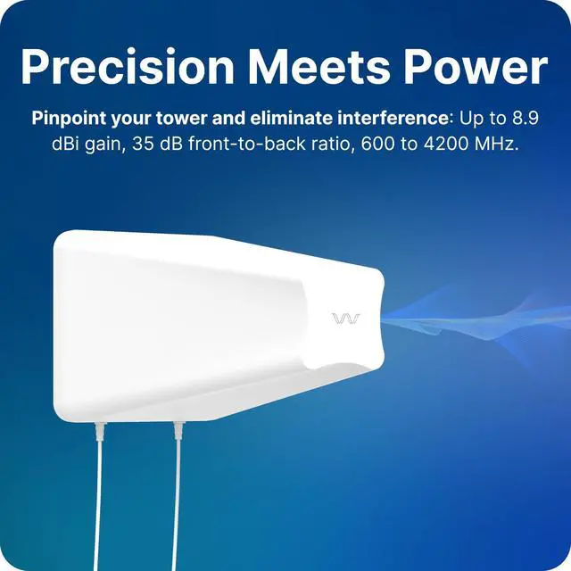 PERFORMANCE: Engineered with a narrow, high-gain beam and cutting-edge RF design, DualPlus locks onto your nearest tower with precision, minimizing interference and maximizing signal strength. With gain of up to 9 dBi that never drops below 6.5 dBi, and an industry-leading front-to-back ratio of 35 dB, it ensures unparalleled 4G and 5G data speeds and reliability, even in the most demanding conditions.