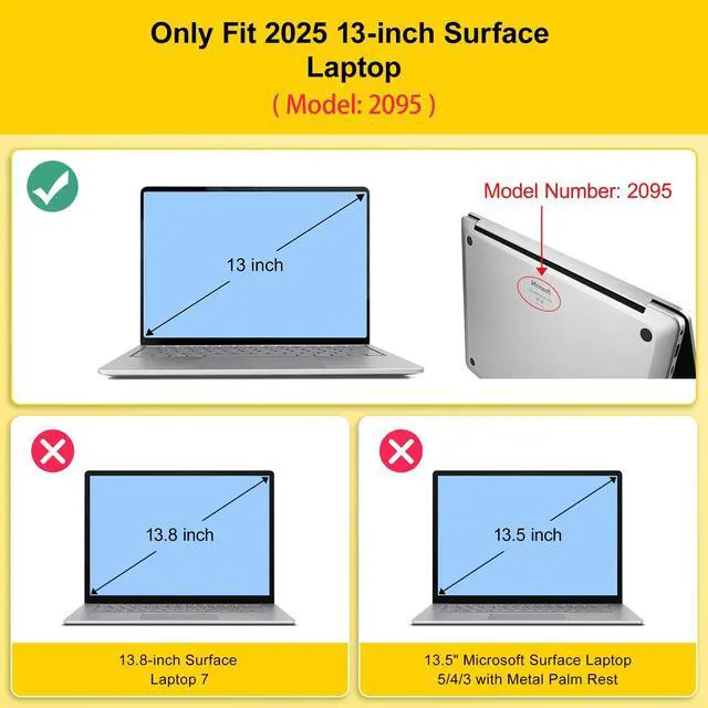 Case 2025 Model: 2095. Not compatible with any other Microsoft Surface 13.5 / 13.8 inch. Please kindly check the model number ''2036'' at the bottom of your laptop before purchase. ^^ Warning Not fit