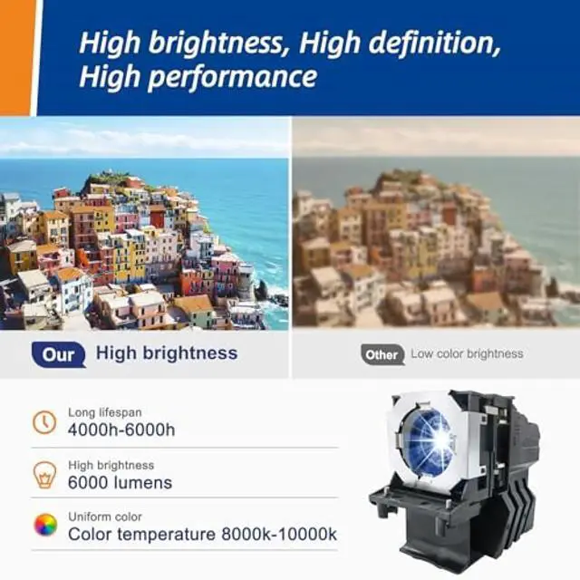 Fit for REALiS WUX6000, WUX6010, XEED WUX6000, XEED WUX6000D, XEED WUX6010 Projectors ^^ *Easy Installation* Designed for hassle-free replacement with clear instructions, ensuring seamless setup in minutesno technical expertise required. ^^ *Factory-Direct Quality & Precision* Crafted in our own state-of-the-art facility, every bulb meets strict OEM standards for flawless compatibility and performance, ensuring your projector operates like new. ^^ *Long-Lasting Durability* Built with robust materials and advanced cooling technology to maximize bulb life (up to 5, 000 hours), reducing frequent replacements. ^^ *1-Year Warr anty for Risk-Free Confidence* Backed by hassle-free warranty support, we guar antee replacements for defects or premature wearproof of our commitment to durability and customer satisfaction.