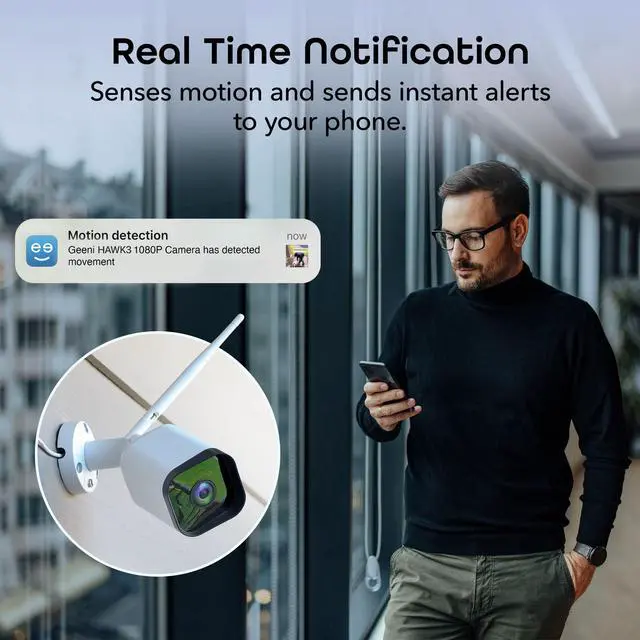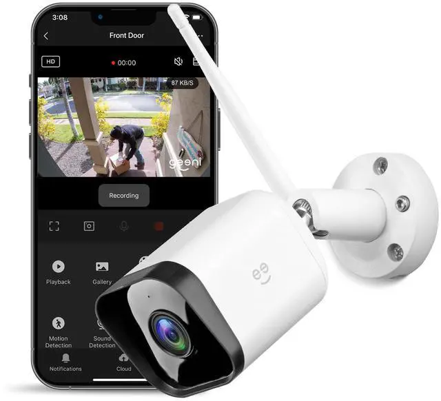 HD Video: Enjoy sharp, detailed footage with 1080p full HD from your Geeni camera. Whether its bright daylight or nighttime, monitor your home with clear visuals from your outdoor home security cameras using your mobile device. ^^ Custom Motion Alerts & Detection Zones: Get real-time alerts from this 1080p security camera on your phone. Use the Geeni app with this WiFi outdoor security camera to adjust zones and sensitivity, reducing false alarms and capturing key activity.