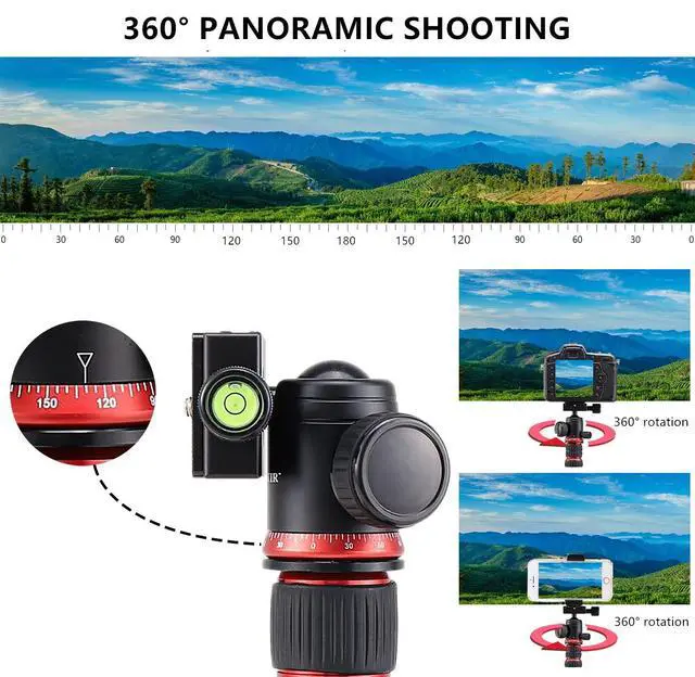 The ball head is specially designed to make it more stable. Also upgraded design 28mm metal ball head can be rotated 360, just fix your phone or camera on a tripod and rotate the ball head to shoot the perfect photo at any angle horizontally and vertically ^^ WORRY-FREE SERVICEOur technicians are constantly upgrading and optimizing our packaging and product quality to ensure safe and high-quality reach to your hands, and will do our best to provide you with a satisfactory shopping experience
