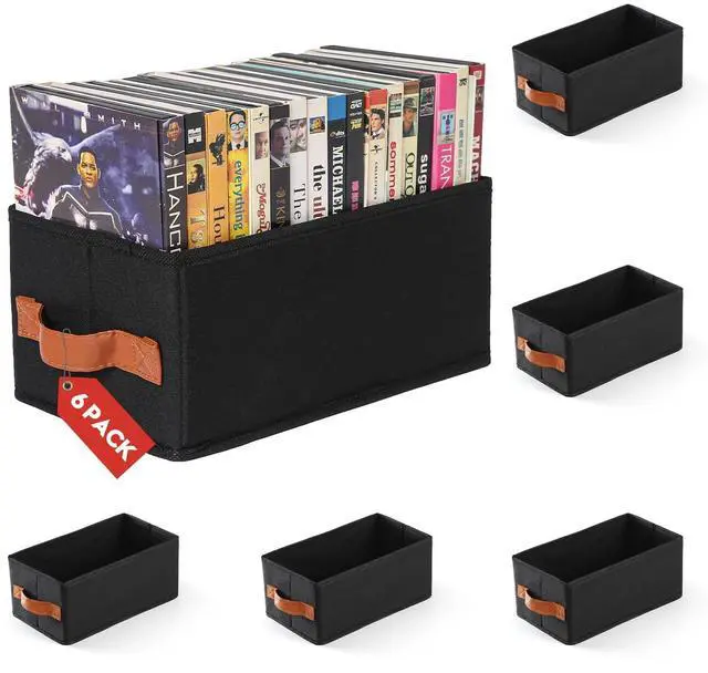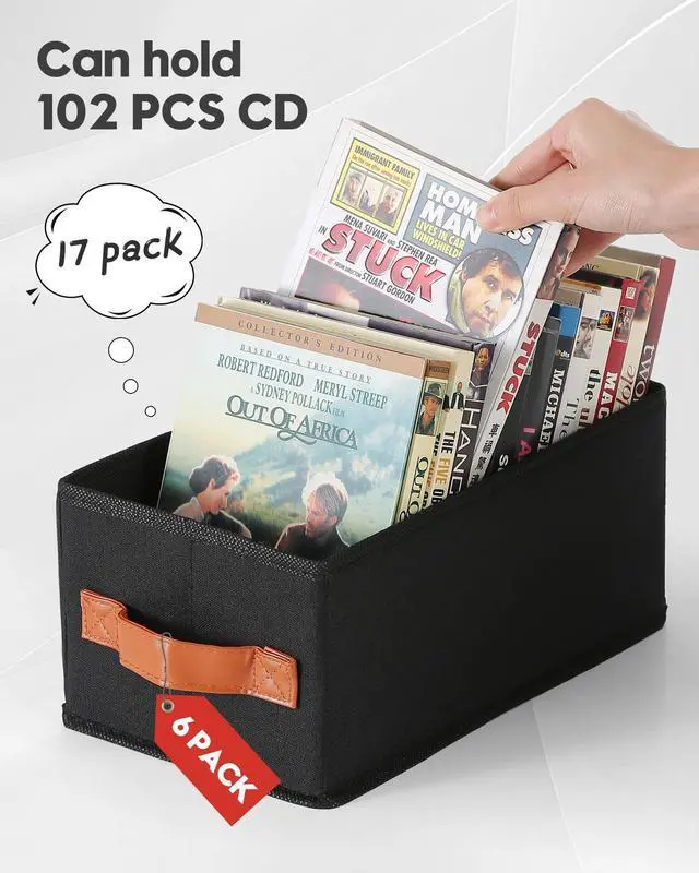 SET OF 6, LARGE CAPACITYThis DVD storage box can hold up to 102 DVD discs, allowing you to organize and store an extensive collection of movies easily. With its large capacity, you can tidy up all your discs at once, preventing them from piling up, getting lost, or getting damaged. The DVD holder provides a safe and orderly storage space for your DVD collection. ^^ FOLDABLE DESIGNThe foldable CD storage box is easy to install and disassemble. With a quick setup time of just one minute, you can have it ready for use.