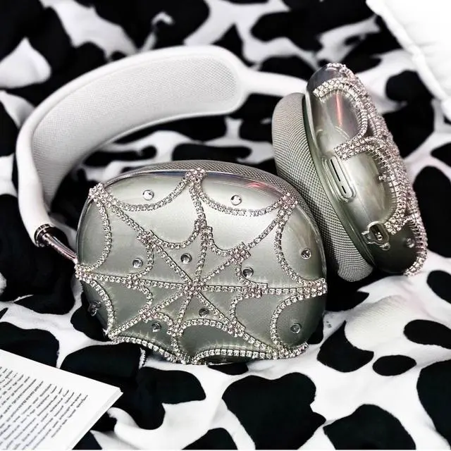 Premium TPU Material Made of high-quality flexible TPU that is durable, lightweight, and resistant to scratches and wear for long-lasting use. ^^ Dazzling Rhinestone Decoration Adorned with sparkling rhinestones arranged in a unique spider web design, adding elegance and eye-catching shine. ^^ Gift-Ready Choice A thoughtful present for birthdays, holidays, anniversaries, or special celebrations, suitable for women, men, and unisex use. ^^ Perfectly matches with AirPods Max.