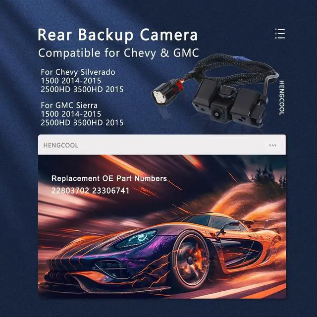 Confirm Vehicle CompatibilityTo ensure compatibility before making a purchase, please verify your vehicle's year, model, sub-model, engine cylinder block type, and engine displacement, in addition to the OE part number. Kindly provide this information in the " Confirmed Fit" section to confirm compatibility ^^ Special CompatibilityHENGCOOL 22803702 23306741 backup camera compatible for chevrolet silverado 1500 2500 HD 3500 HD 2014-2015, for GMC sierra 1500 2500 HD 3500 HD 2014-2015 ^^ Replace OE NumberHENGCOOL rear park assist camera replacement oe part numbers 22803702 23306741 590082 PAC13 ^^ Meticulously DesignEquipped with a lens of 720P clarity and IP68 waterproof rating, the camera captures the world behind you with astonishing precision.