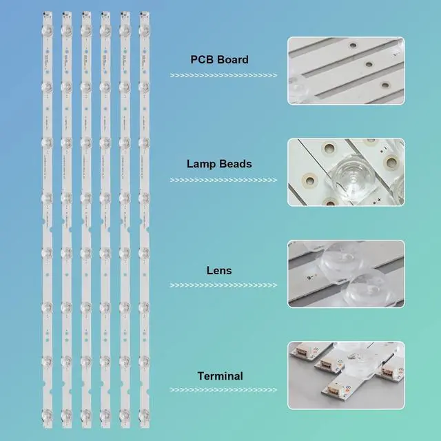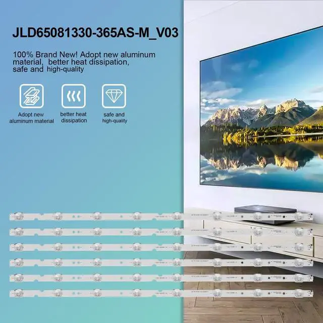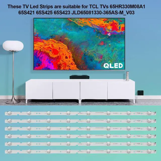 TV Led Strips for TCL Backlight Replacement Part Type === LED Backlight Strip Replacement for TCL 65 inch TV ^^ LED Backlight Strip for TCL 65 Inch TV Replacement Part Number === JL. D65081330-365AS-M_V03, GIC65LB51_3030F 2.1D, 4C-LB6508, 4C-LB6508-PF01J, 4C-LB6508-PF02J, 4C-LB6508-ZM05J, 4C-LB6508-ZM02J, E469119 ^^ Replacement for TCL Backlight Strips 65 Inch TV models === 65S4 65S421 65D6 65S423 65S425 65S421LCAA 65S421TCAA 65S423TFAA 65S425LABA 65S425LACA 65S425LBBA 65S425MBCA 65S425TABA 65S425TACA 65S425TGAA 65S425TMBA 65S4LDAA 65S4LEAA 65HR330M08A1 ^^ High-Quality === LED Strips Replacement are high quality and 100% brand new! Our TV Backlight strips have good heat dissipation performance, and are safe and reliable ^^ Packing list ===6 pcs LED Strips * JL.